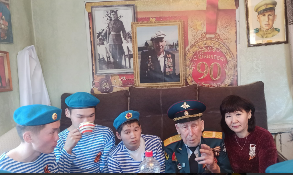 Сегодня учителя-волонтеры отряда «Дорога добра» и старшеклассники школы поздравили с днём рождения ветерана Георгия Васильевича Абросимова, ему исполнилось 98 лет. Все мы были преисполнены чувством благодарности и гордости от того, что провели время с ветераном ВОВ. Наш ветеран с честью и достоинством прошел Великую Отечественную войну и после войны работал учителем в нашей школе. В этот день дети пожелали Георгию Васильевичу крепкого здоровья. В тёплой, семейной обстановке прочитали стихи и исполнили песни военных лет. Ветеран в свою очередь поделился своими воспоминаниями.