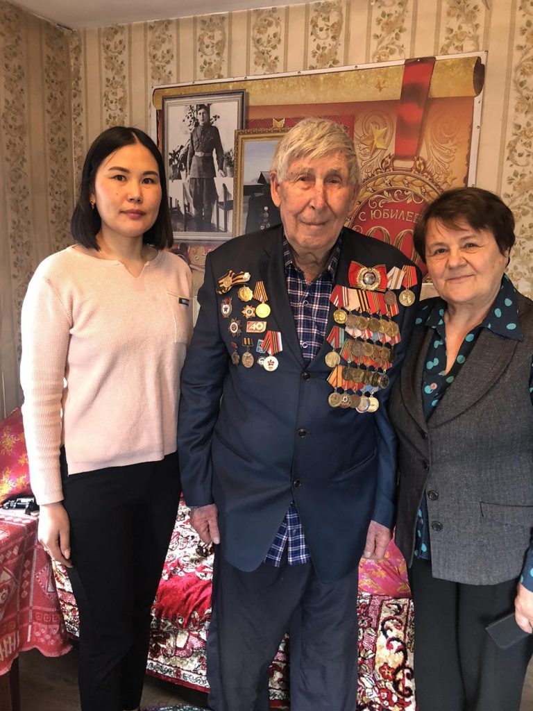 1 21 апреля исполнилось 95 лет ветерану ВОВ Георгия Васильевича Абросимова. В этот день с такой знаменательной датой его поздравили наши преподаватели Шактар-оол Кара-кыс Сергеевна и Давыдкина Надежда Алексеевна.